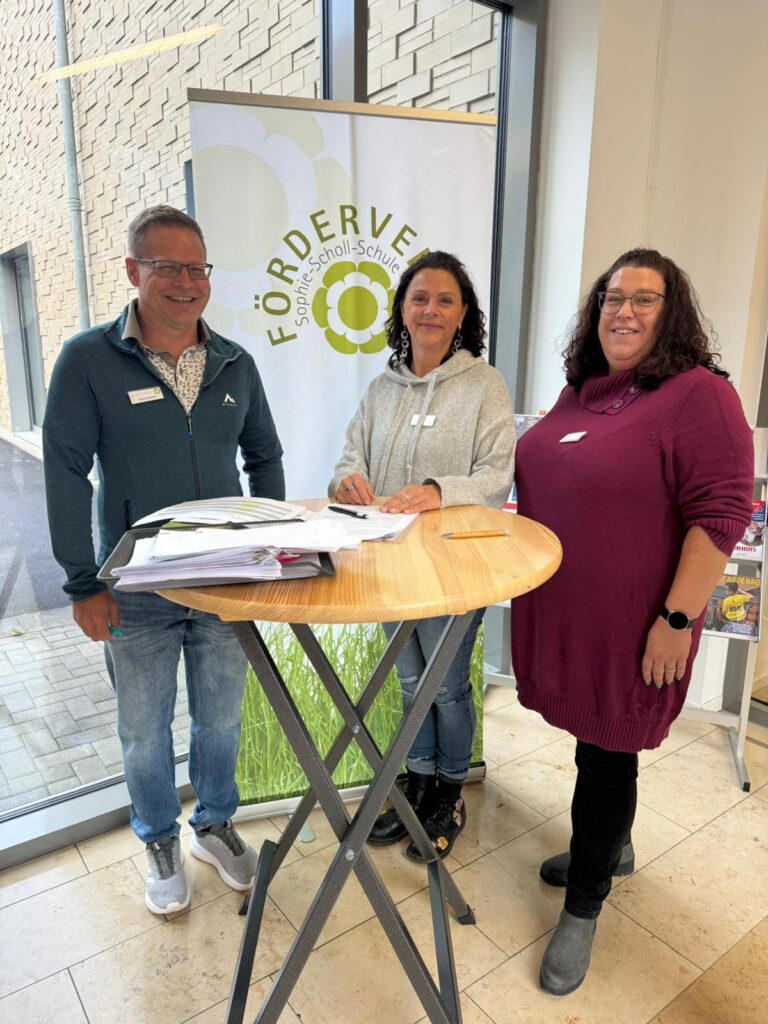 Wir setzen uns zusammen aus dem „geschäftsführenden Vorstand“, das sind die beiden Vorsitzenden und der Kassenwart und weiteren ehrenamtlichen Beisitzern mit der Schriftführerin. Die beiden Schulleitungen und der Vertreter der Lebenshilfe, Patrick Mähling. In dieser Konstellation kümmern wir uns um alle Belange.